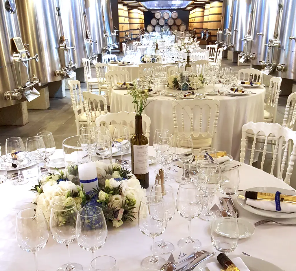 Disponible de mi-avril à mi-juillet, le cuvier de 125m2 sera idéal pour vos repas dans une atmosphère moderne et intemporelle au sein d’un château viticole : 130 personnes assises.